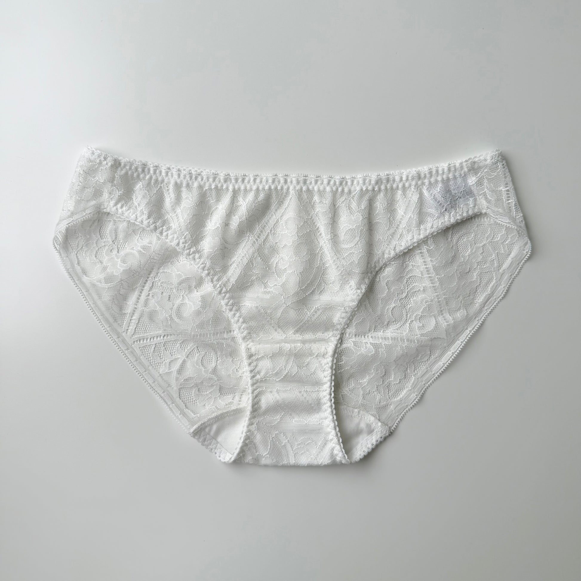 (The front panel is lined with a thin layer of power net to reduce sheerness, while the back is made from a single layer of lace.)