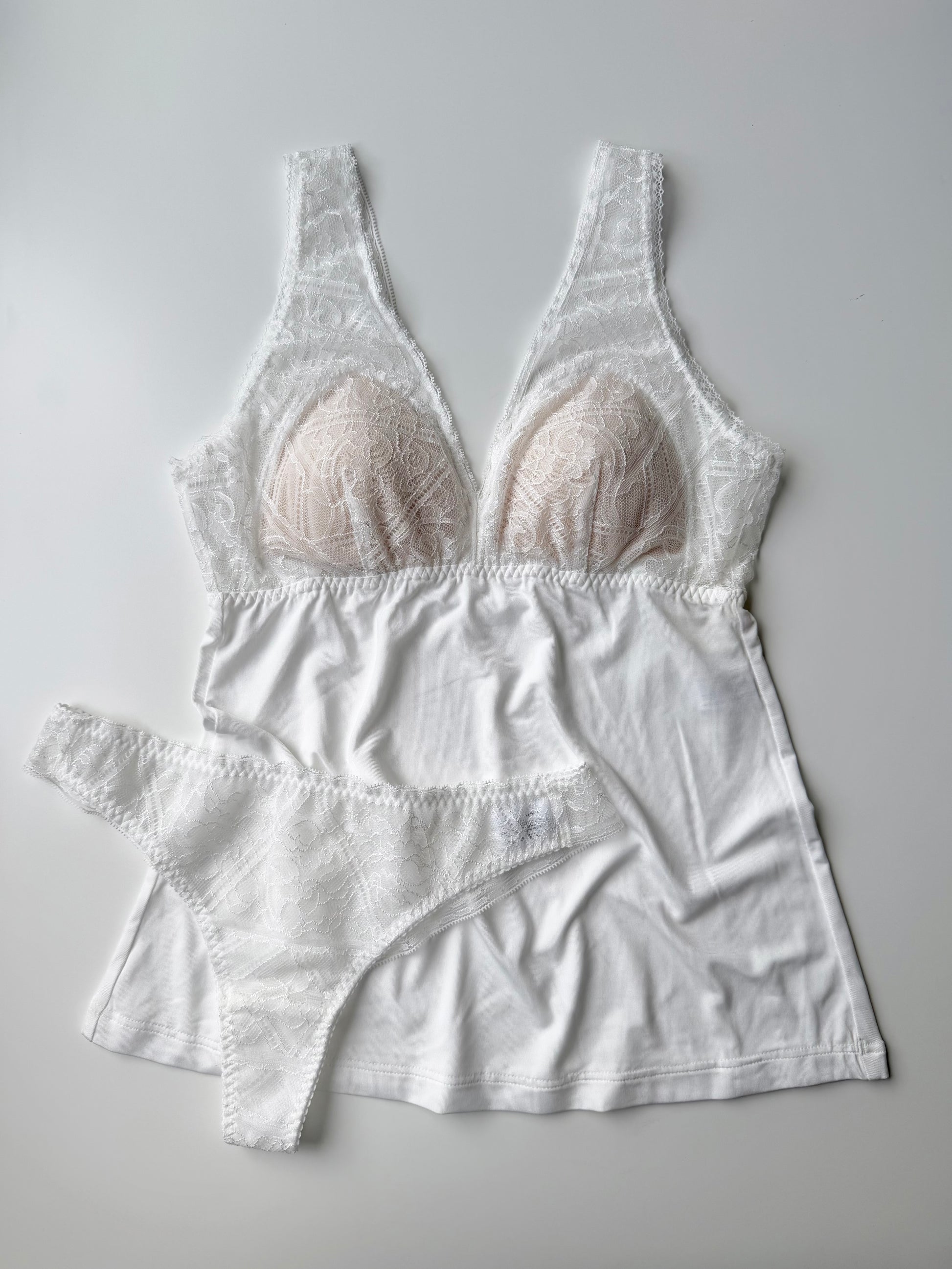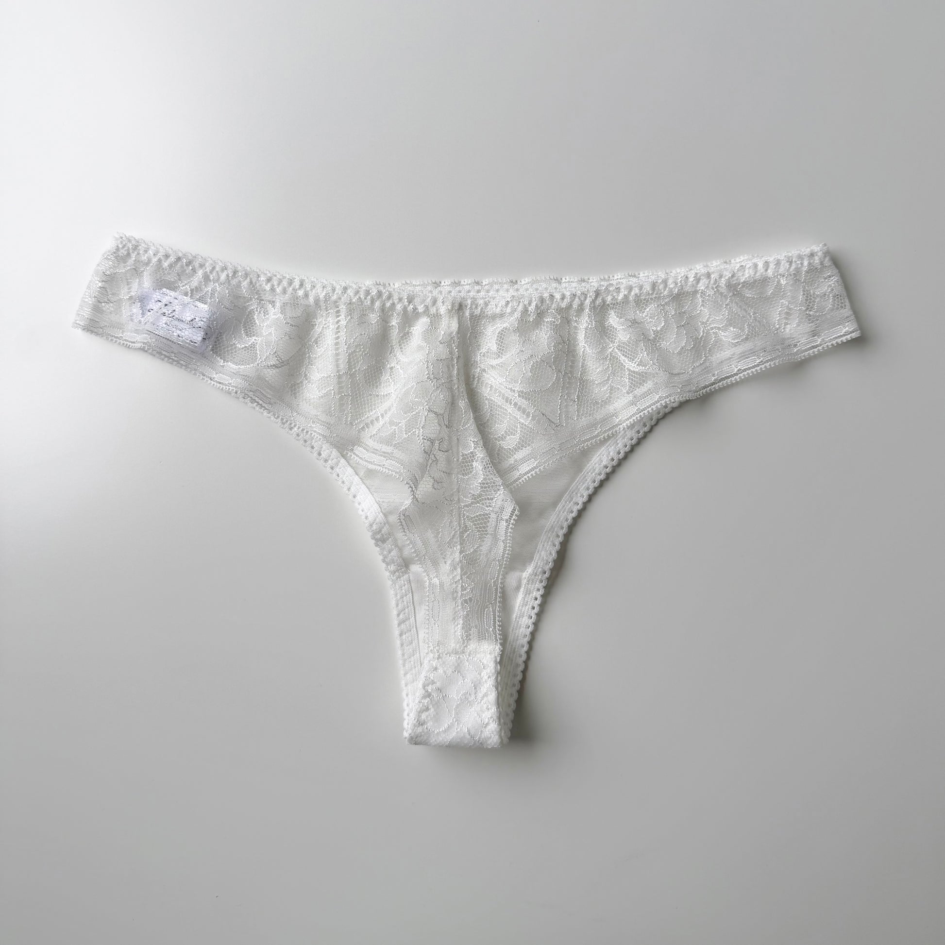 (The front panel is lined with a thin layer of power net to reduce sheerness, while the back is made from a single layer of lace.)